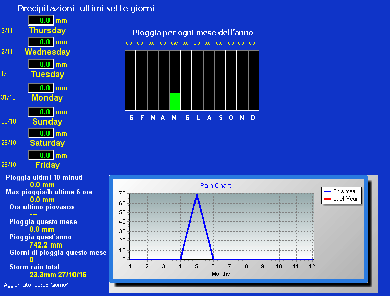 Massima pioggia per minuto = 0.0 mm giorno 04 tempo 00:07